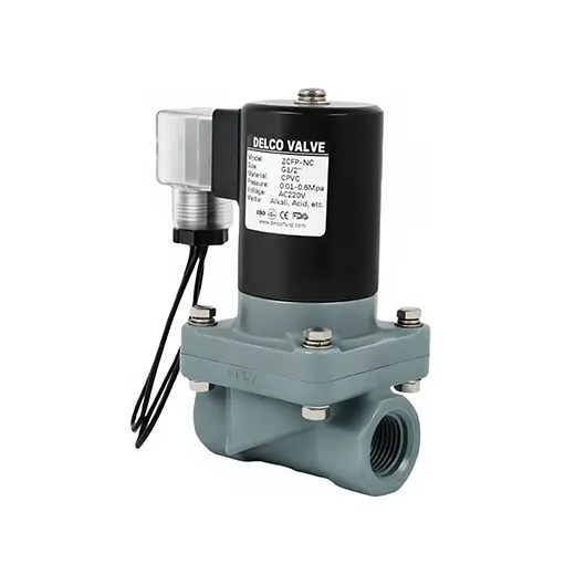 سلسلة DELCO ZCFP هي صمام ملف لولبي مقاوم قليلا للتآكل مع جسم بلاستيكي من UPVC/CPVC مناسب للسوائل التآكل الخفيفة, بما في ذلك الملح, حمض ضعيف, والمحاليل القلوية (مثلا., حمض الكبريتيك <10٪). متوفر في كلا التمثيل المباشر (بداية صفرية) وأنواع الطيران التي تعمل بالطيران, توفر هذه التقنية تحكما موثوقا وفعالا من حيث التكلفة للتحكم في السوائل لمعالجة المياه والتطبيقات الكيميائية الخفيفة.